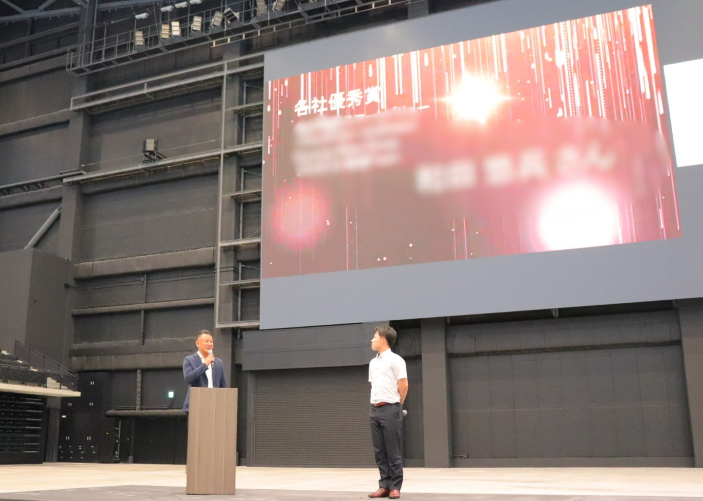 それを見守る同じ部署のメンバーたちが、スマホを片手に笑顔で撮影していたり、涙で言葉に詰まる社員に「頑張れー!」と声をかけたりと、会場全体があたたかい空気に包まれていました。