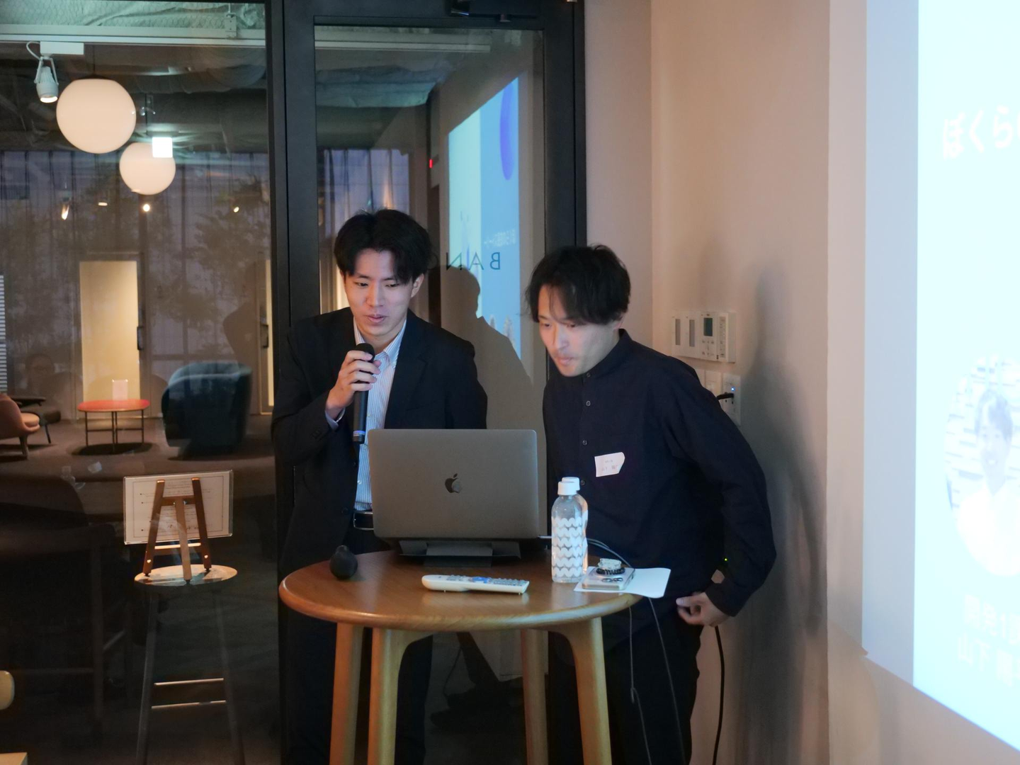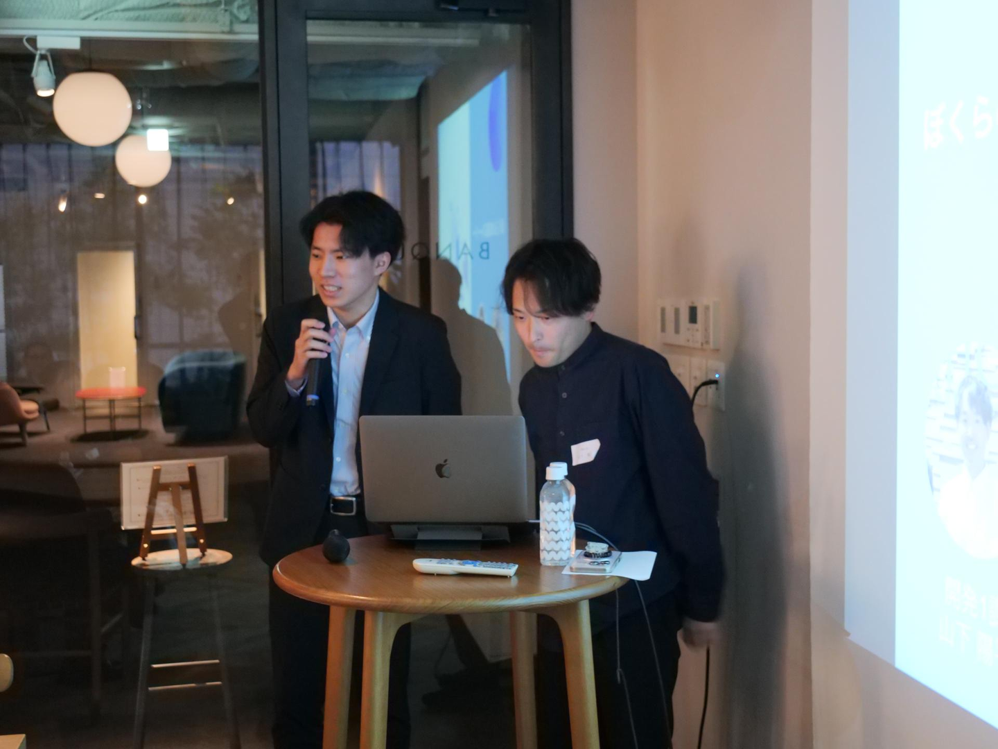 先日開催した社員総会で、開発エンジニアのやまぴと、インフラエンジニアのとみーに