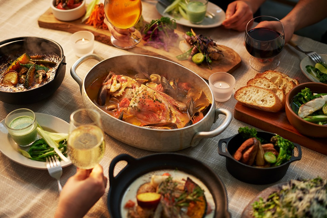 “休日のスープストックトーキョー”をテーマに、大切な人と分け合いながら食べるスープの鍋と、美味しいワインが頂けるお店です。
