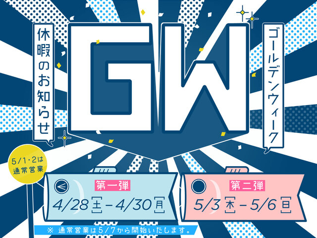 弊社では、下記期間をゴールデンウィーク休暇とさせていただきます。