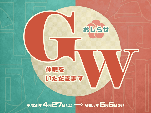 下記期間をゴールデンウィーク休暇とさせていただきます。