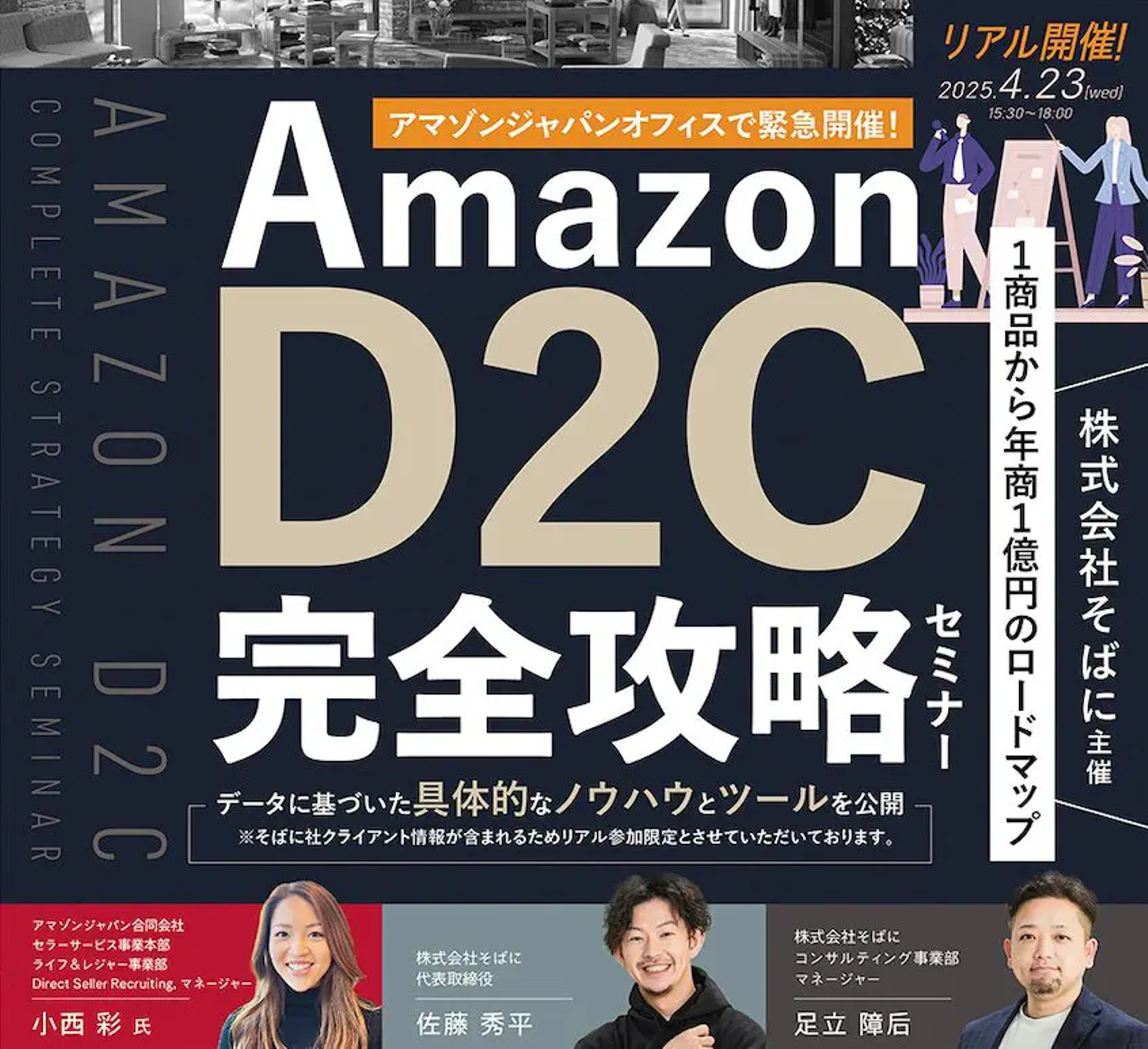Amazonの運用などに関するセミナーを、2か月に1回ほど定期開催していまして、1回のセミナーに平均約100件ほどのお申し込みをいただいています。