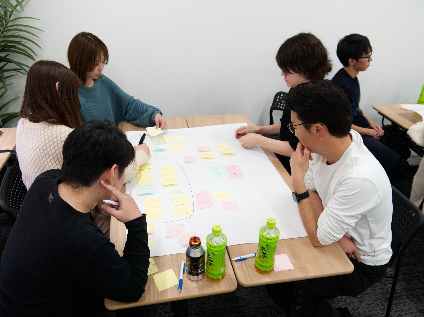 午後の部は、普段の業務チームごとに分かれ、業務プロセスのペイン(問題点)を可視化し、具体的なアクションプランを作成するワークショップを行いました。