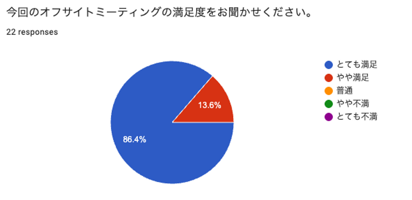 ミーティング後のアンケートでは、参加者の86.4%が「とても満足」、13.6%が「やや満足」と回答し、合計で100%の満足度となりました!