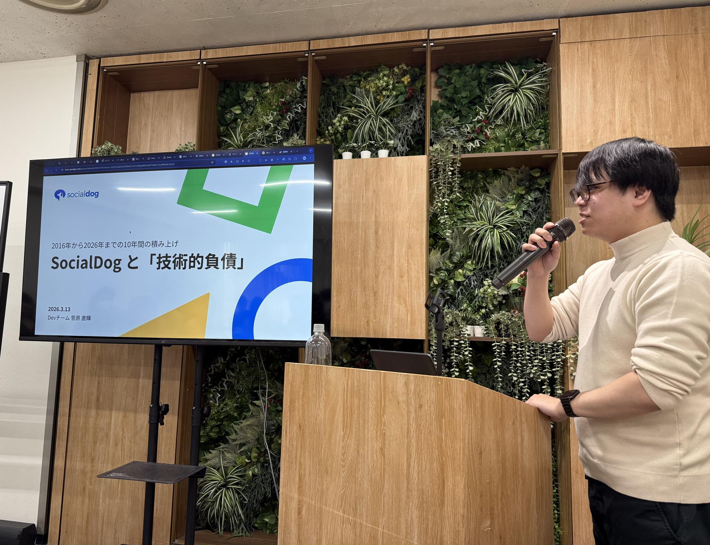 その後、SocialDogにおける技術的負債に関して理解を深めるためにEM(エンジニアリングマネージャー)のnaokiさんから、歴史や現状について、コミット数や機能の複雑度などのデータを用いた解説をしてもらいました。