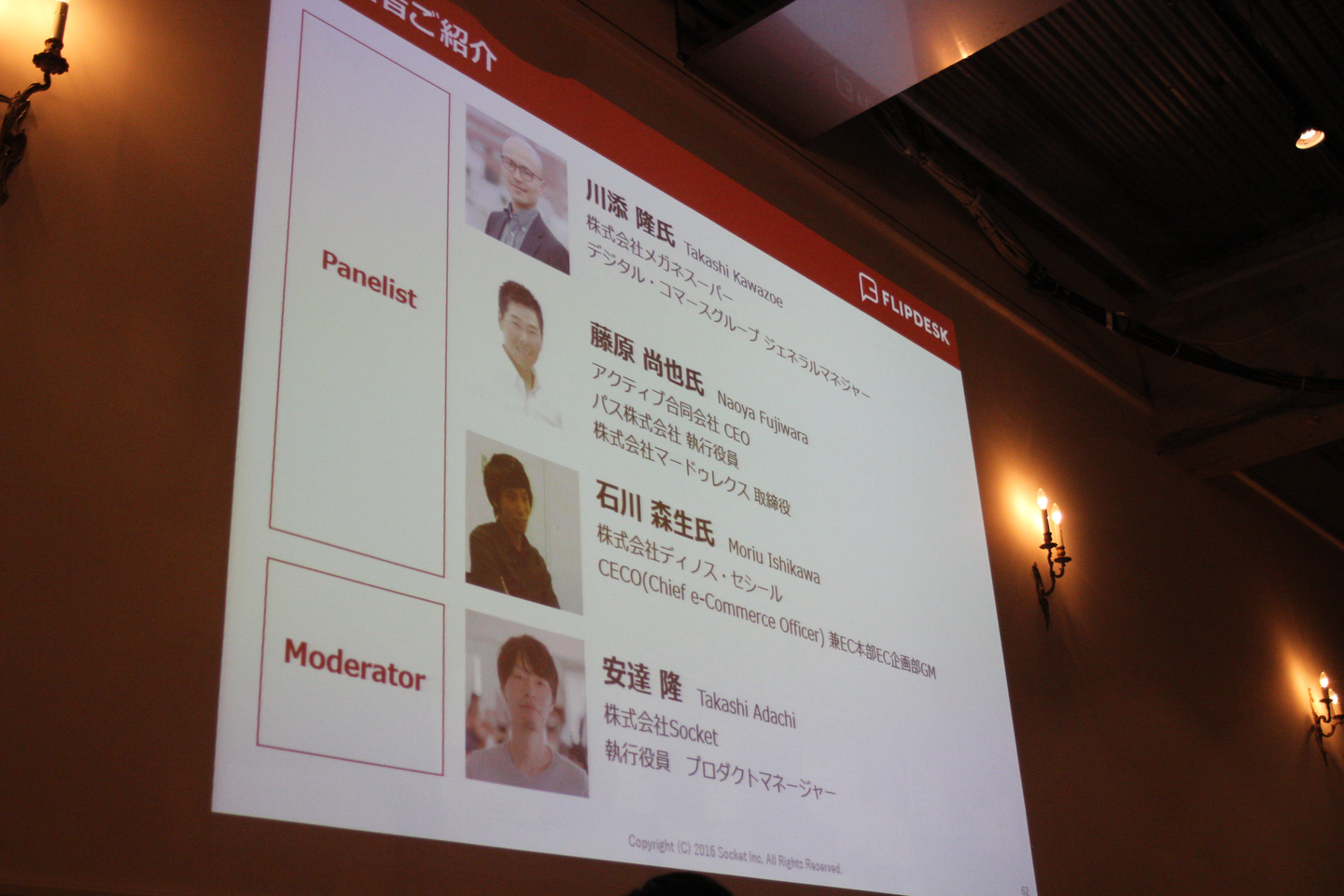 「ECのプロたちが語る!動画、LINE、組織体制などホットトピックを中心にぶっちゃけトーク」と題し、プロダクトマネージャー安達をモデレーターにパネルディスカッション!