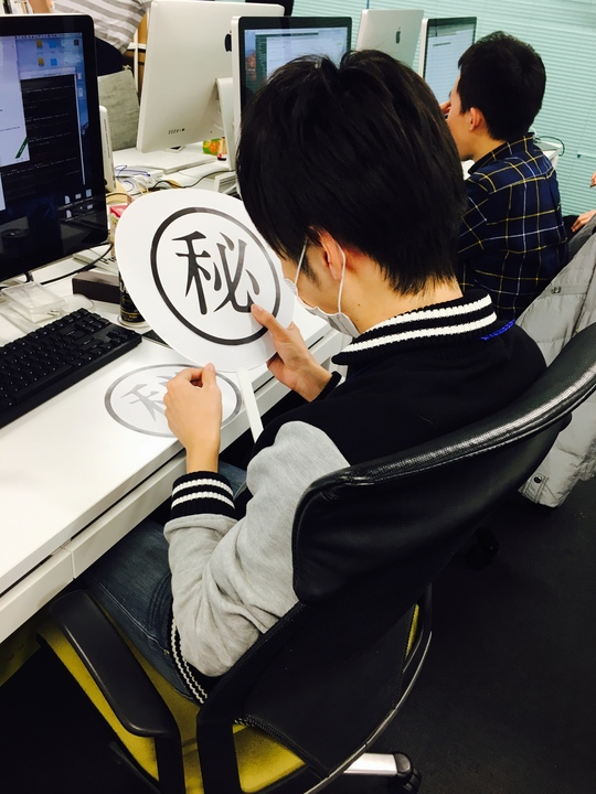 CTOパネルディスカッションの小道具を準備中の弊社エンジニア。