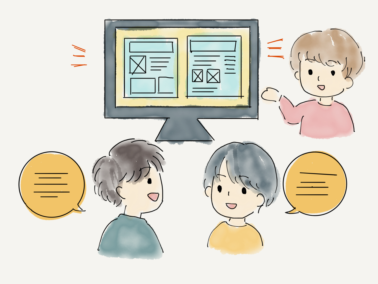 こういう時こそ、デザイナーに活躍してもらえると助かります!デザイナーが実際のモノ(デザイン)をチームに提示することで、メンバーは同じイメージを共有しながら議論することができます。