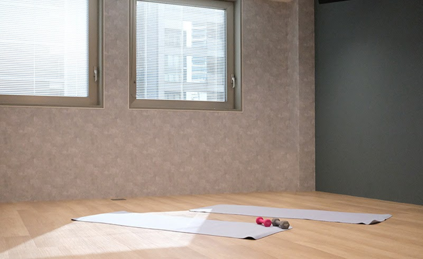 予約がなければ従業員も好きに使っていいので、ちょっと身体を動かしてリフレッシュしたり、休憩したりにも利用しています。池内も煮詰まるとトランポリンを無心で飛んでいます。