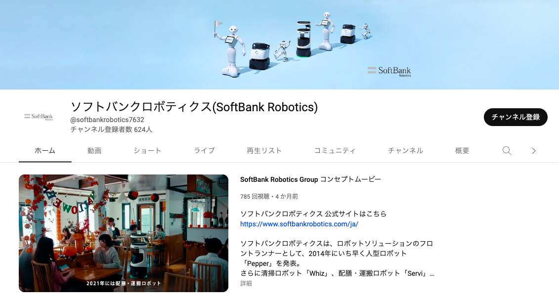 >>ソフトバンクロボティクス 公式 YouTubeチャンネル