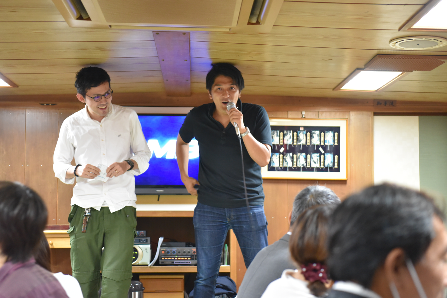 盛り上がるのが好きなメンバーが多い船では、カラオケ大会も開催