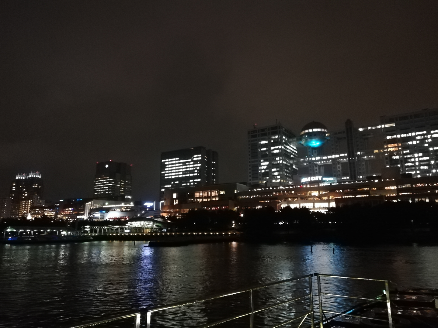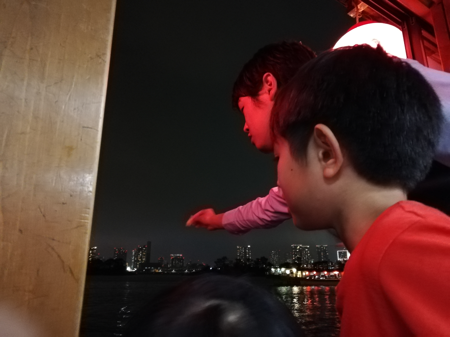 さて屋形船といえば、料理と夜景。小雨ではありましたが、外の景色も楽しめました。