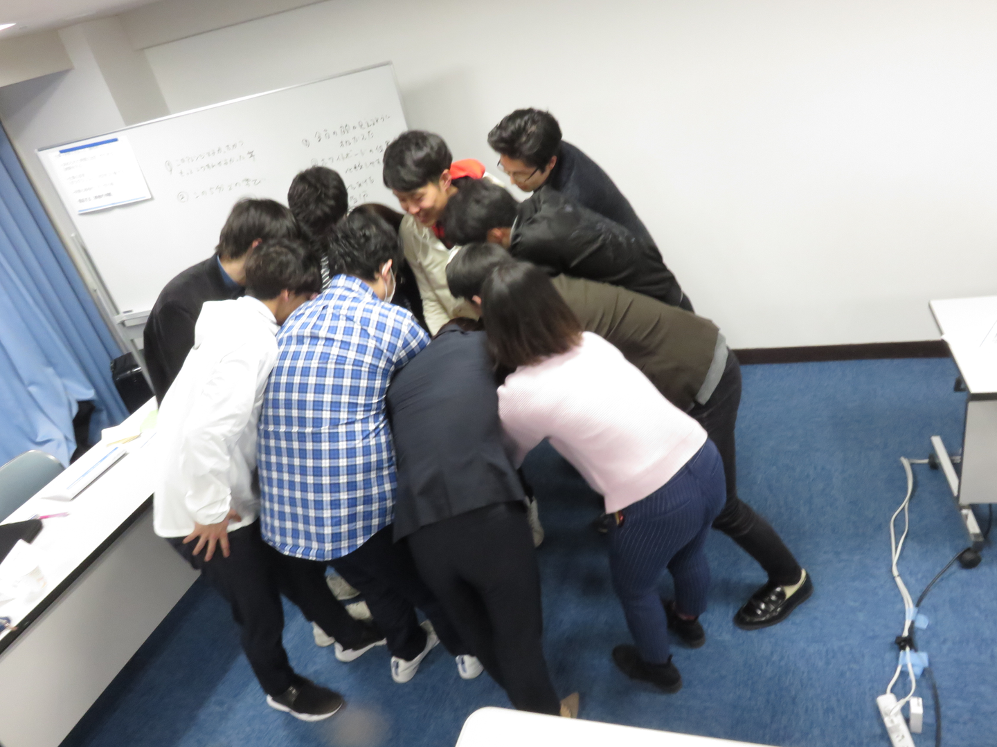 最後は円陣を組んで、社会人1年目に向かってみんなでカツっ!!