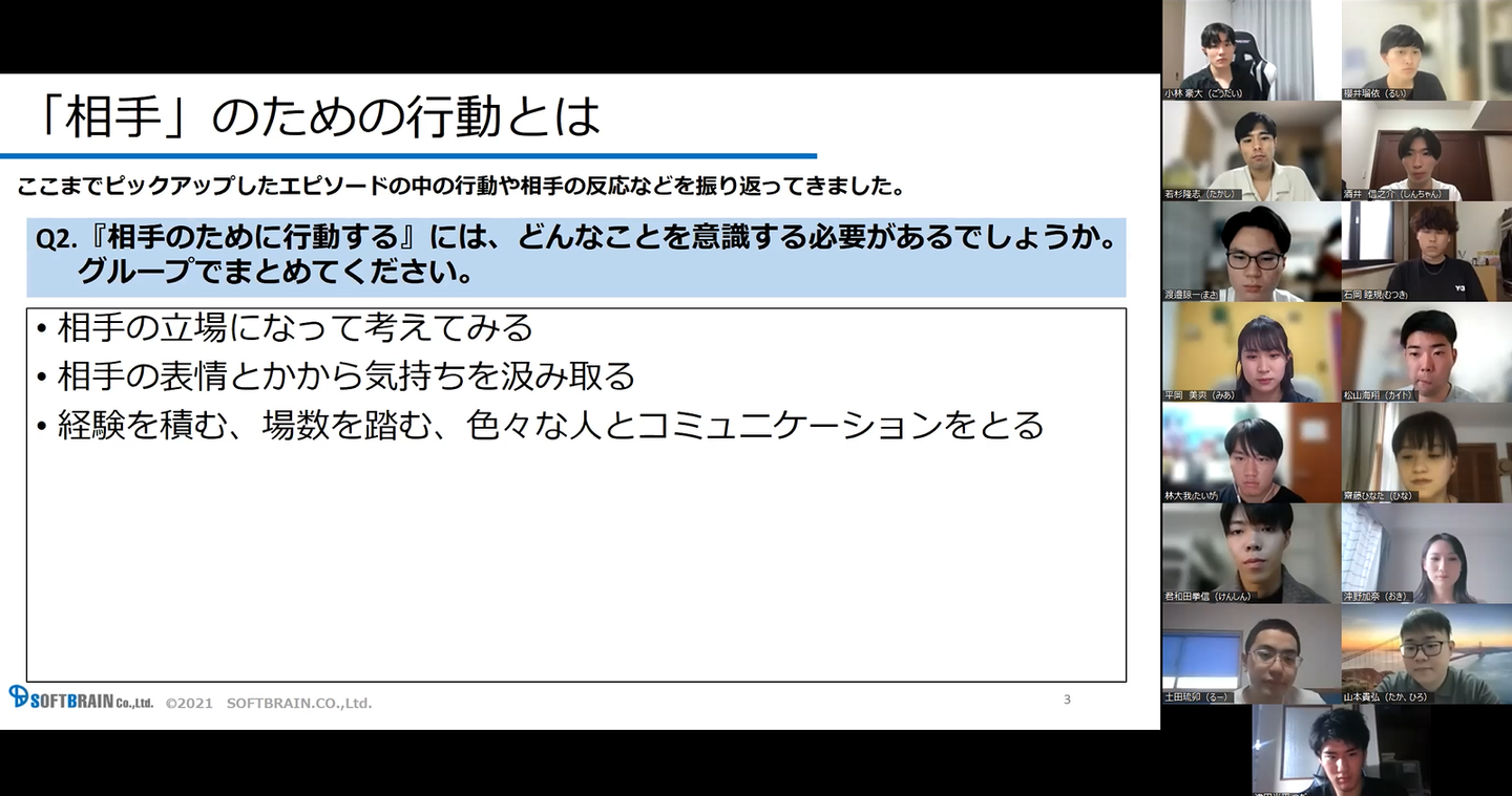 「相手のために行動すること」について考えていただきました。