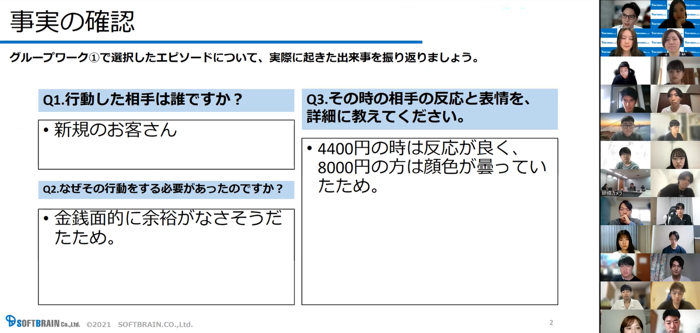 「濱野さんの行動を受けてお客様はどう感じたと考えられるか?」という質問について