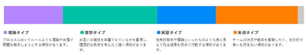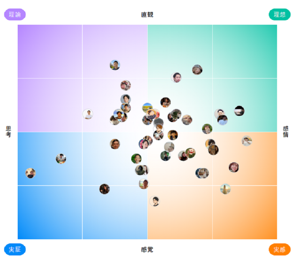 まずは全体の要素構成をご紹介します。4種それぞれの考えを持ち合わせた社員がバランスの良い人数構成で所属している事が分かりますね。