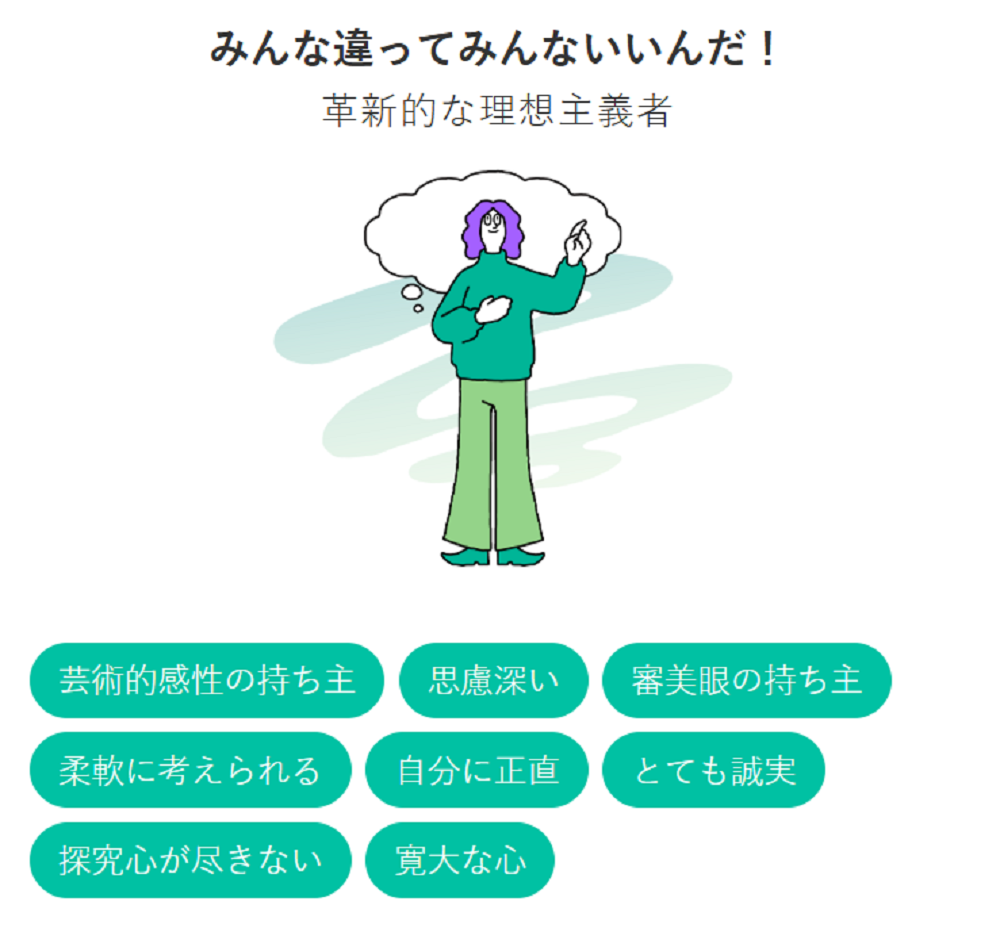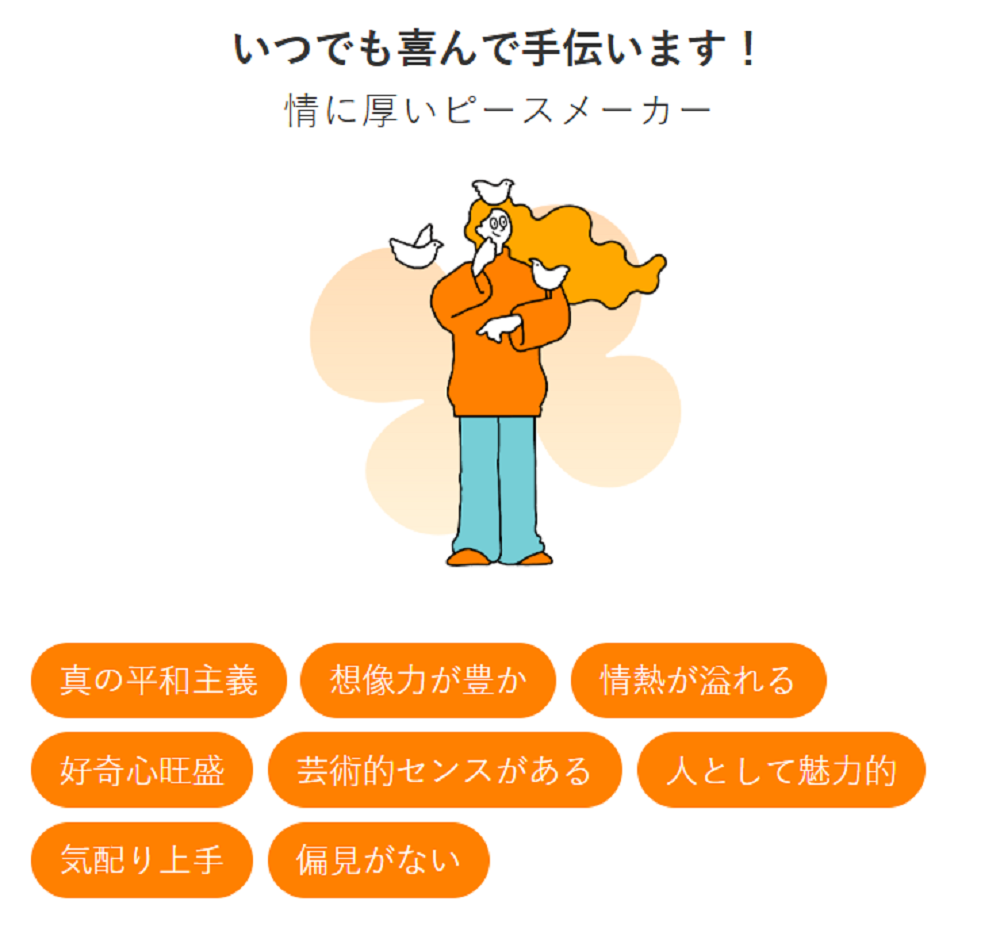 続いては人間関係の「和」を大切に考えるピースメーカーの存在が5人です。第一位の革新的理想主義者とほぼ同数という事は、非常にバランスが良いと感じます。このキャラクターのみんなは「穏やか」や「優しい」「気配り上手」のような言葉がぴったりの存在です。彼らが様々な方向に気を回してくれるからこそ理念である「チームラーク」や「プロフェッショナル」を実現できているのではないでしょうか。