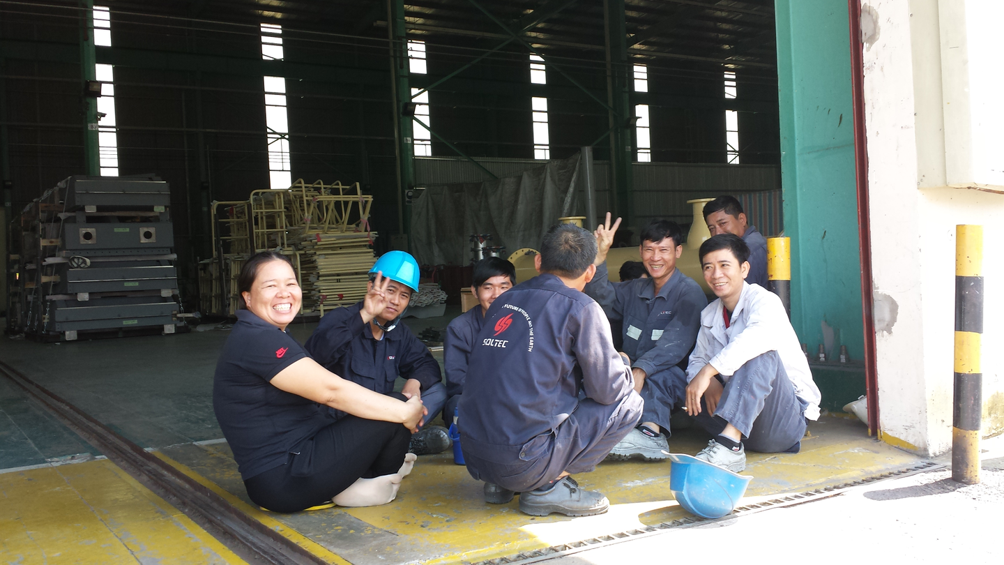 組立加工溶接チーム。この休憩所は近々新しくするそうですね。