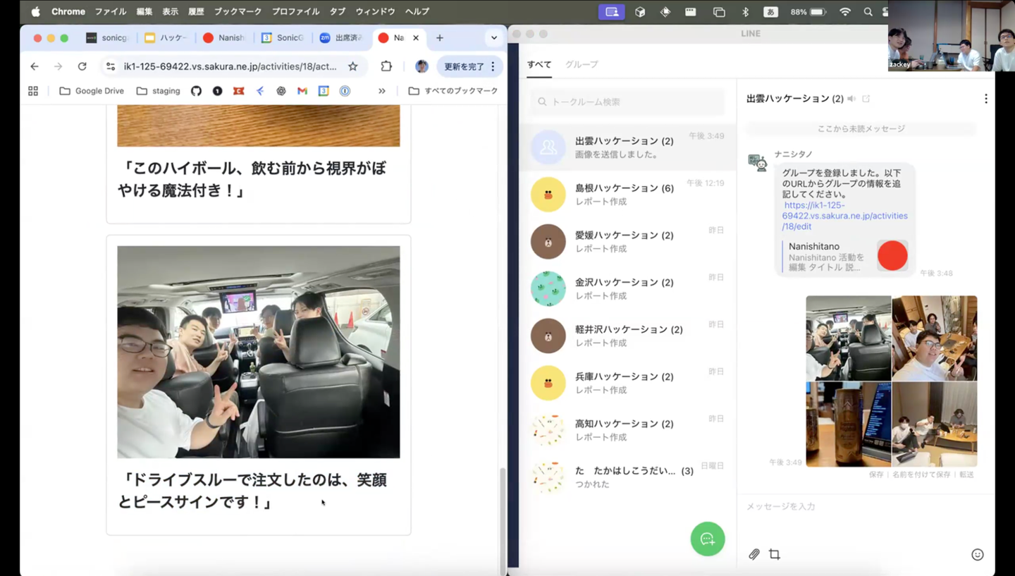 成果発表会では、いつものハッカソンのように制作したアプリの説明だけでなく、旅行エピソードや開発エピソードも発表してくれたので、今回は、その内容をざっくり紹介します。