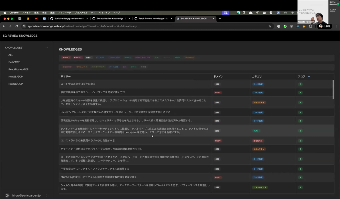AIにソニックガーデン流のコードレビューを教えるアプリ(GitHub上の過去のプルリクコメントから考え方を抽出し、Cloude Codeなどのknowledgeに取り込む)