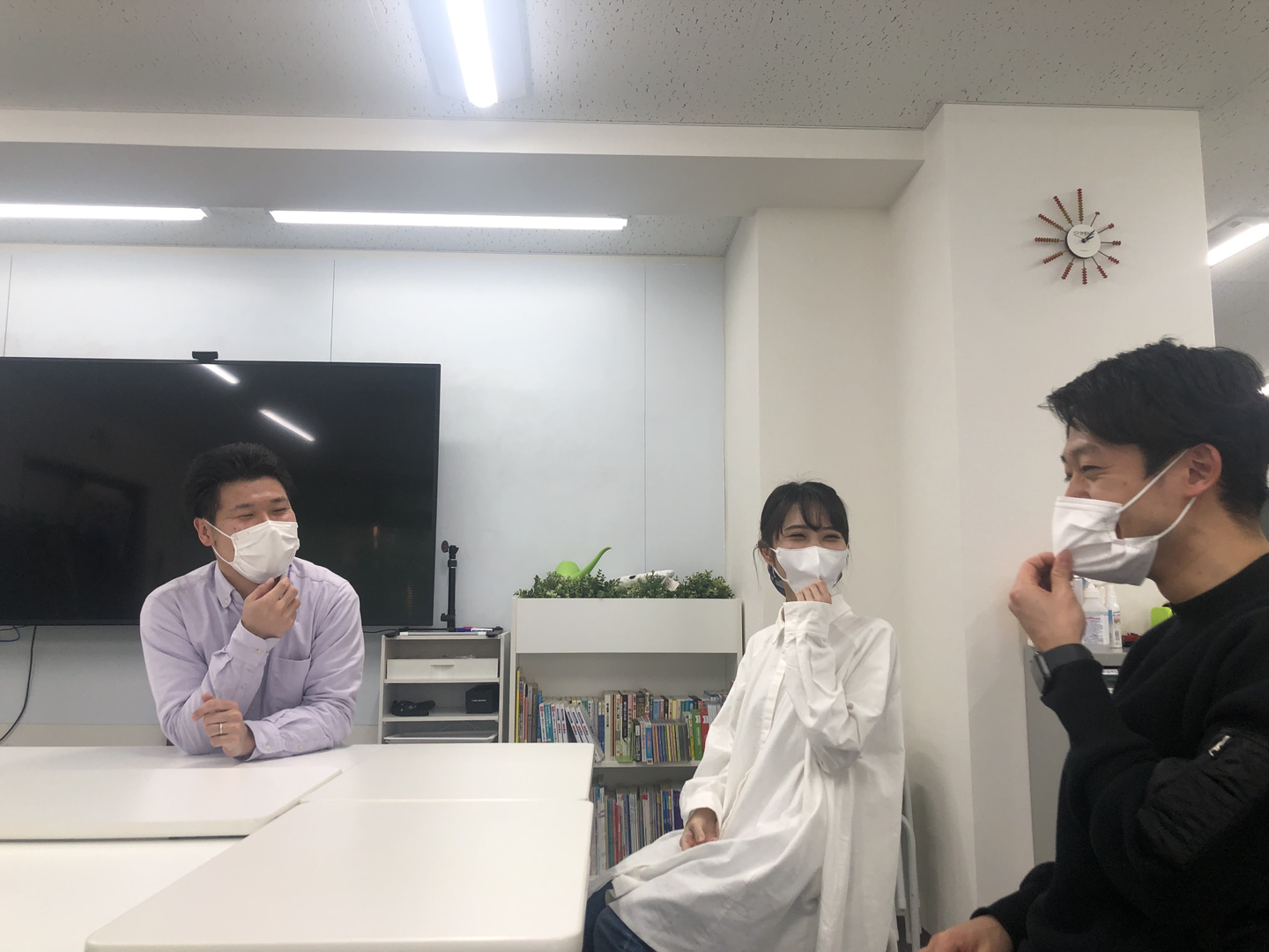 福島|まだ入社して1ヶ月ですが、アットホームな雰囲気と挑戦できる環境だなと感じました。皆さん、わからないことや疑問点があった際に時間をとって丁寧に対応してくださることに加え、橋本社長をはじめ、僕たちが何かやりたいことがあれば挑戦させてくれます。このような環境やみなさんの人柄がアットホームな雰囲気に繋がっているのかなと思っています。
