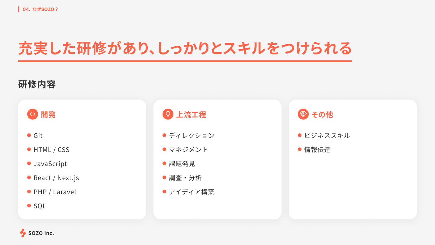 SOZOは、ALCHMEYの教育システムをしっかりと受け継ぎつつ、スタートアップならではの柔軟性を強みとしています。