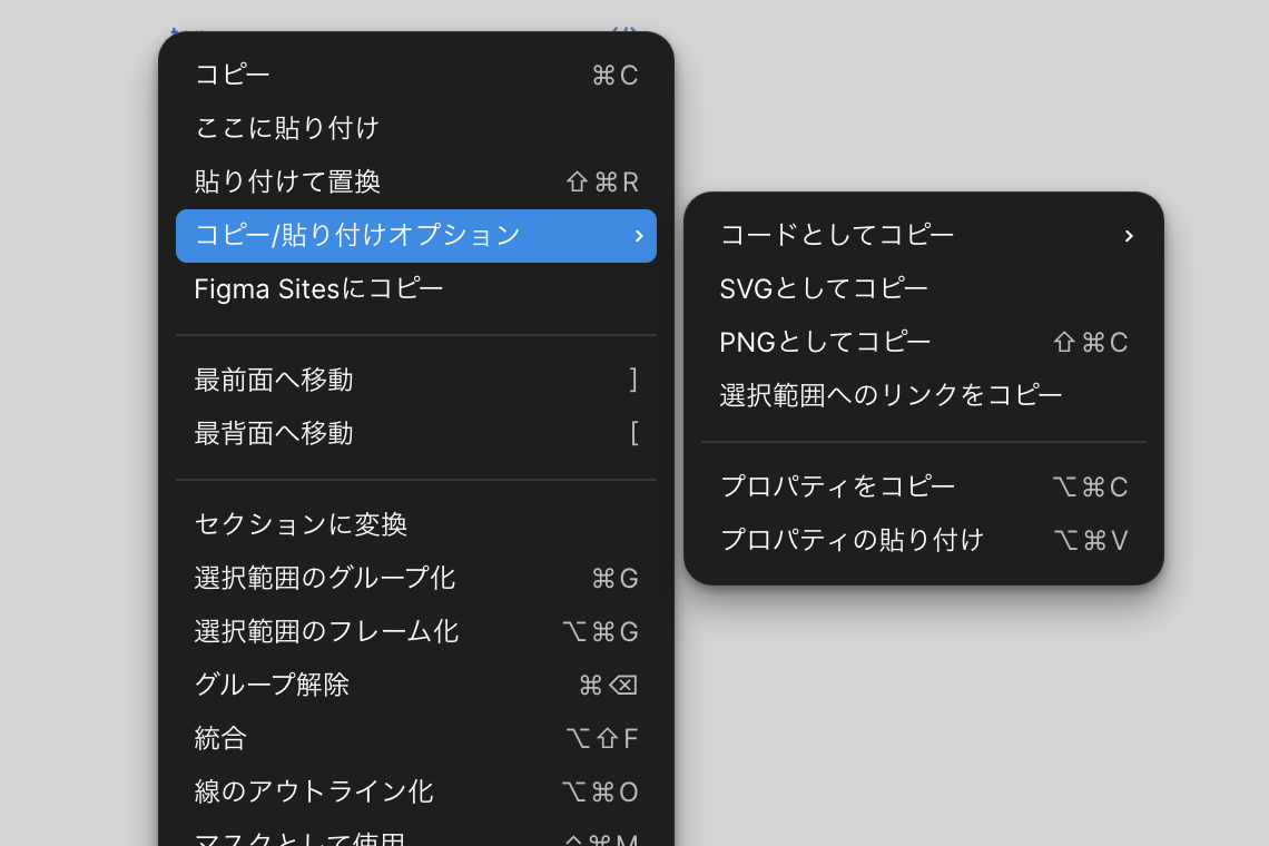 対象となるフレームやコンポーネントを選択し、「コピー/貼り付けオプション」→「選択範囲へのリンクをコピー」と行いコピーします。