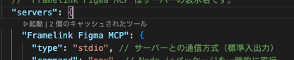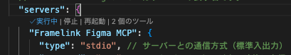 "type": "stdio", // サーバーとの通信方式(標準入出力)