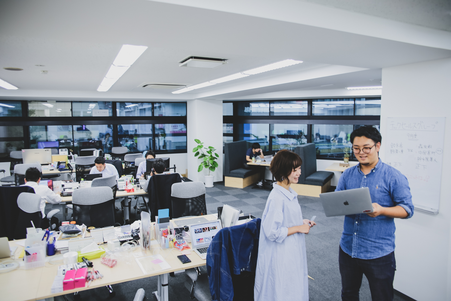 実際導入してみると、営業と開発や、営業とデザイナーなど、他部署のメンバーが一緒に座る場面が多く見られ、「嬉しい誤算♪」と代表も喜んでいました(笑)