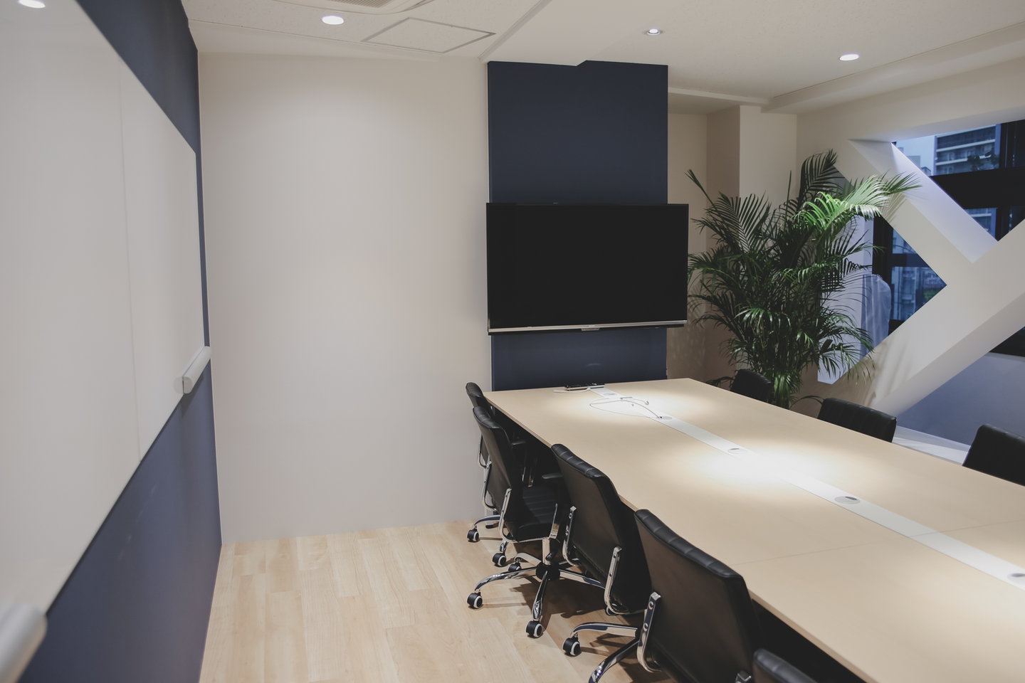 来客用の会議室はガラス張りになっていてとてもオシャレ!モニターやホワイトボードなども設置されいてディスカッションが円滑に進むように工夫されています!