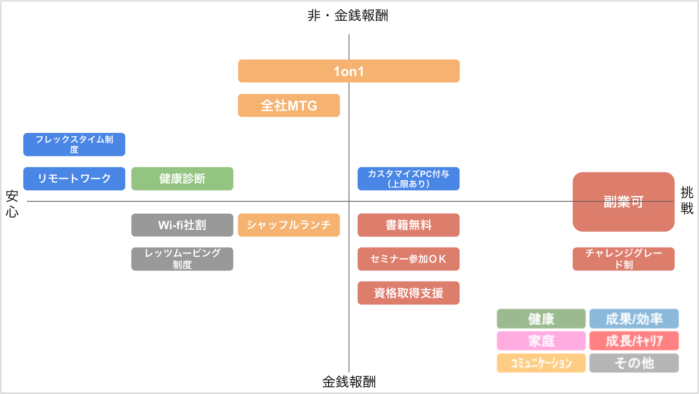 ①既存の福利厚生を再確認(目的別にカテゴリ分けして説明)
