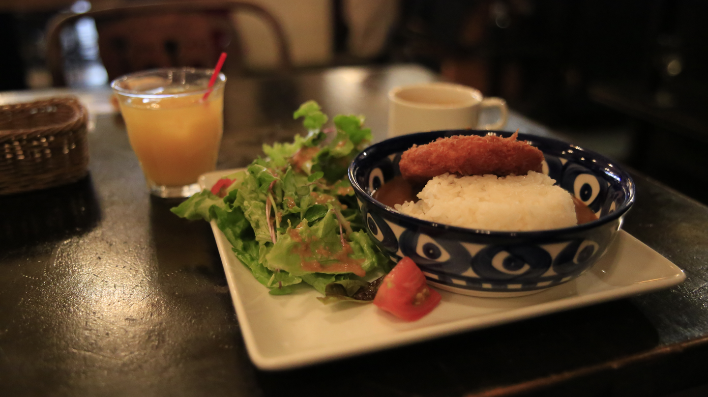 注文したのはカツカレー。サラダどっさりでバランス ◎!