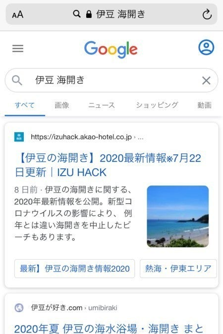 (村中)情報は王道からトレンドまで、まんべんなく載せられるように構成しています。もちろんWebメディアなので、キーワードボリュームを意識して記事を作ることも基本ですね。あとは、現地にある情報をより詳しく深堀して、いかに価値をプラスして伝えるか。例えば「海」を伝えるにも、伊豆には海岸が10以上あるので1つ1つを細かく伝えたり、「海開き」などの季節性に合わせた記事も発信しています。ちなみに「伊豆 海開き」で検索すると、今『IZU HACK』の記事が1位なんですよ!(執筆時現在)