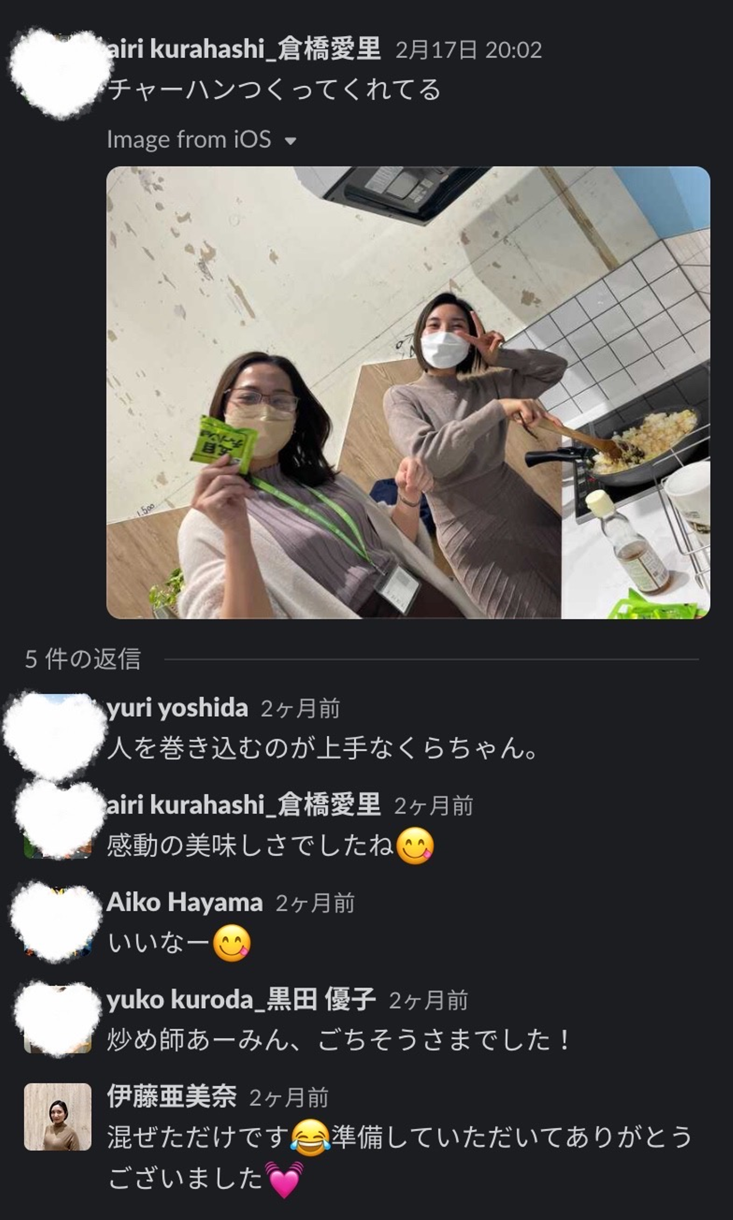 ▲あーみんとチャーハンを作った日の夜。社内チャットも盛んです。