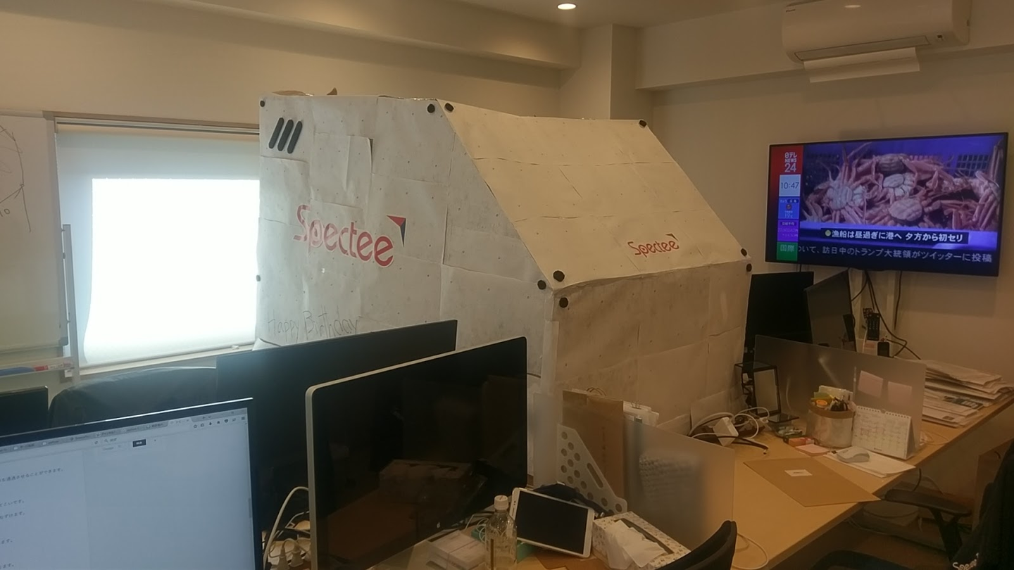 誕生日にはこんなプレセントをもらうことも。昨年も今年も、このルーム内で引きこもって仕事して、周りが笑っていました。ひどいものです。