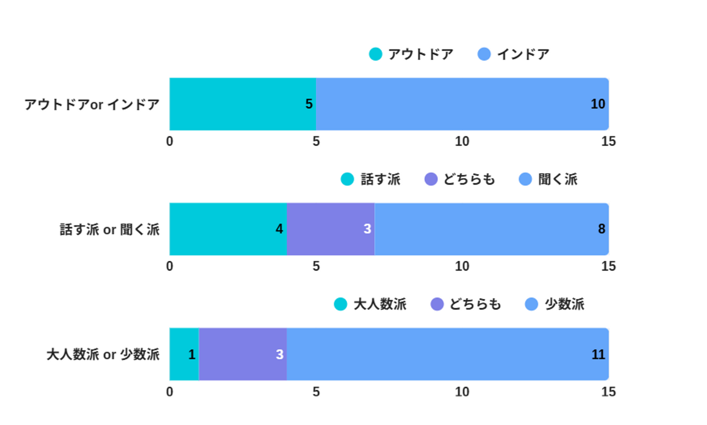 また大人数・少人数に関しては少人数が好きな方がやや多いようですね!