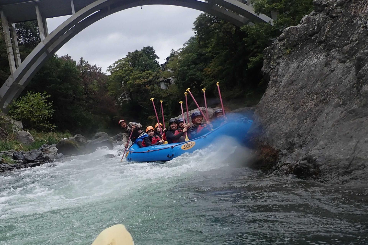 ラフティングとは、ゴムボートに乗って仲間と力を合わせて川を下るアクティビティです!