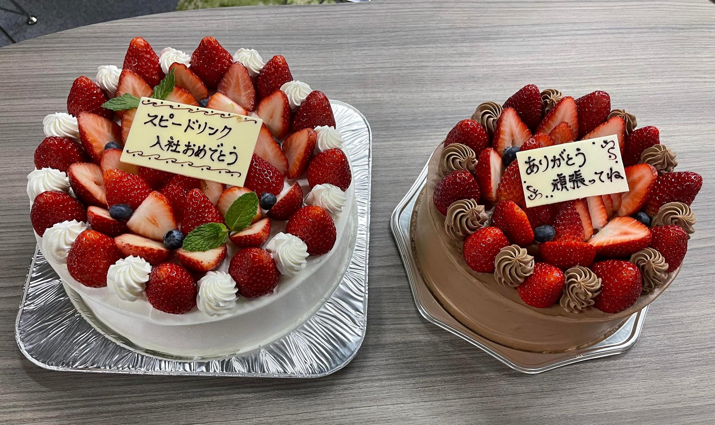代表の奥さまから、新入社員にケーキのプレゼント(*^^*)