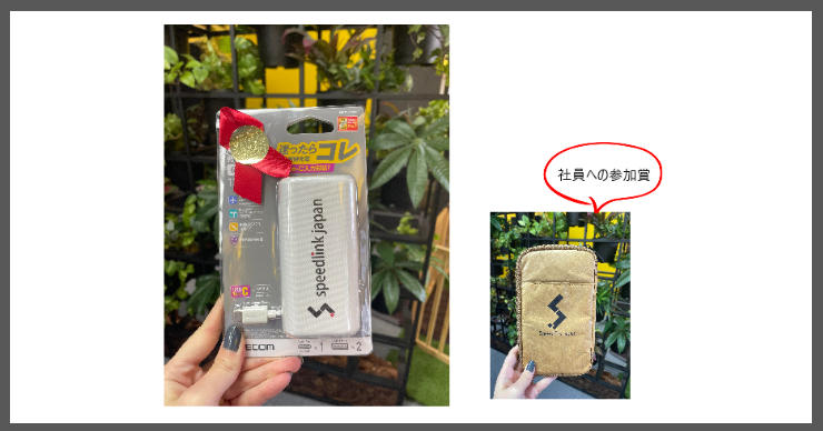 ロゴ入りのプレゼントを貰えるのは社員ならではなので、少しでもスピードリンクジャパンの社員になったことを実感してもらえていると嬉しいですね!