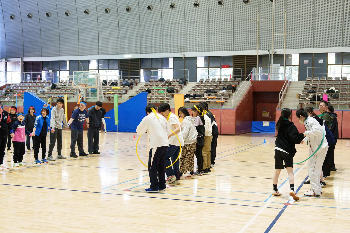 第2競技はフラフープリレーを行いました!コツを掴んだチームは本当に早かったです!