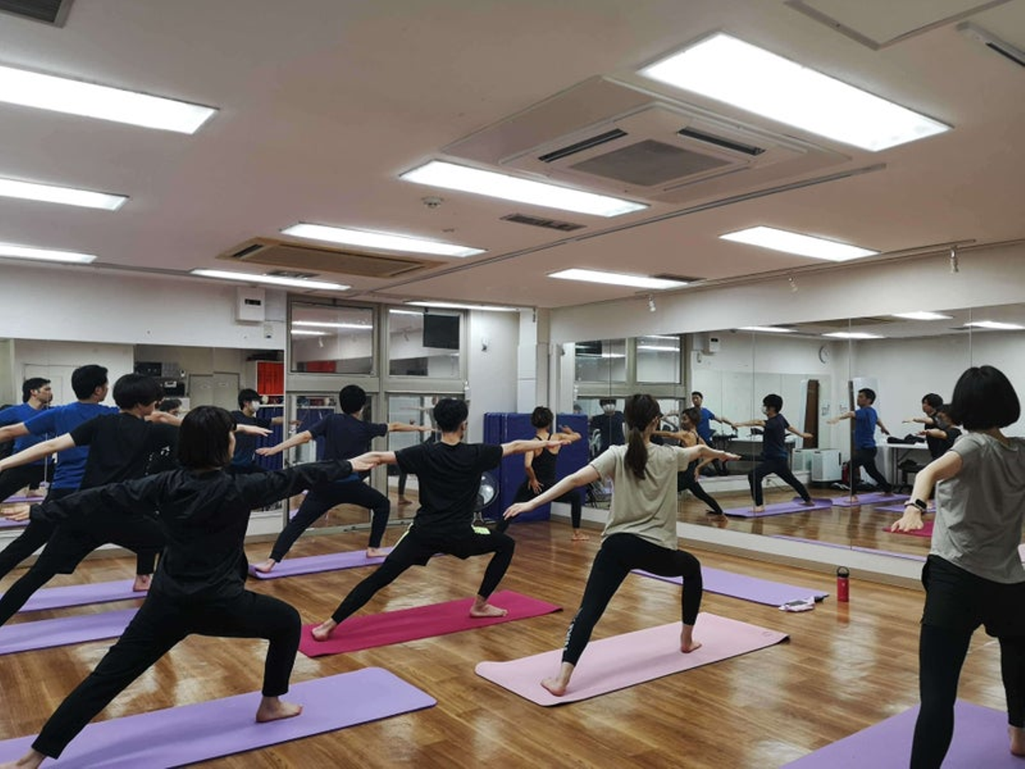 ヨガ会は、希望する社員・インターンが無料で参加できる会社主催の1時間のヨガレッスンのことです。着替えさえ用意すれば特に必要な道具もないので誰でも気軽に参加することができます。