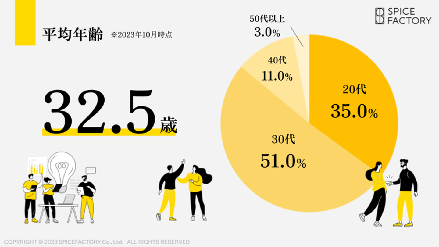 また、フルリモートで働いている社員も全体の13%となっており、スパイスファクトリーの社員は全国各地で活躍しています。