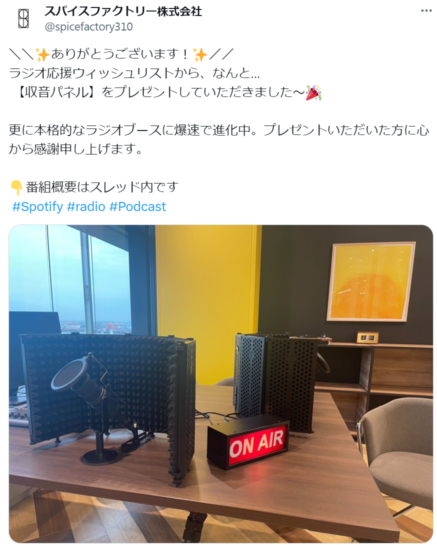 ラジオを始めた際にウィッシュリストも公開してみたのですが、なんと早速ギフトをいただきました!いただいたものについては、SNSでご紹介しています。皆さん本当に応援ありがとうございます…!!