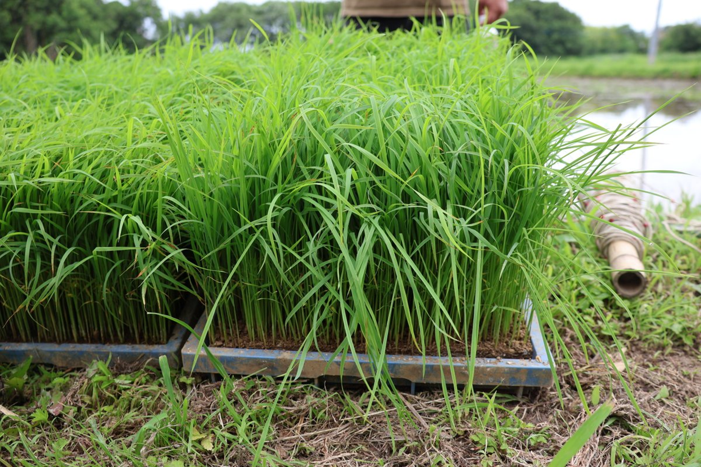 その後、田んぼへ案内いただき、植える苗を見せていただきました。
