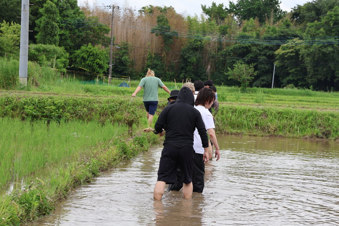 田んぼまでの道のりも、立ち退いた家屋があった場所が竹藪になっていたり、歴史のある薬師堂があったりと、とても都内近郊の場所とは思えず、非日常の体験でした。トンボやタニシの卵などの生物もたくさんいたのが印象的でした。