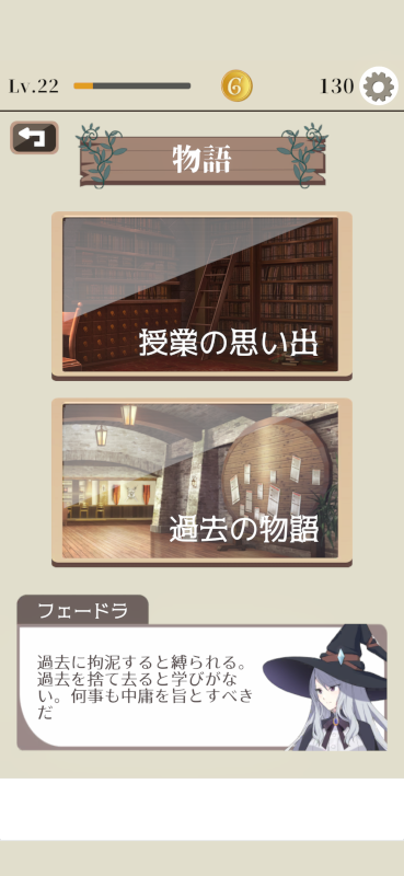 呪文学習の授業をクリアすると物語から「過去の物語」が開放されます。