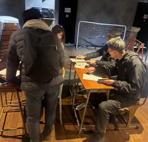イベントでは5チームに分かれ、どのチームが最も早く謎を解き脱出できるかを競いました。校舎内で説明を受けた後、1時間の制限時間内に課題を解決するスリル満点の展開。限られた時間で次々と課題に取り組むなかで、自然とチームワークやコミュニケーションも深まりました。