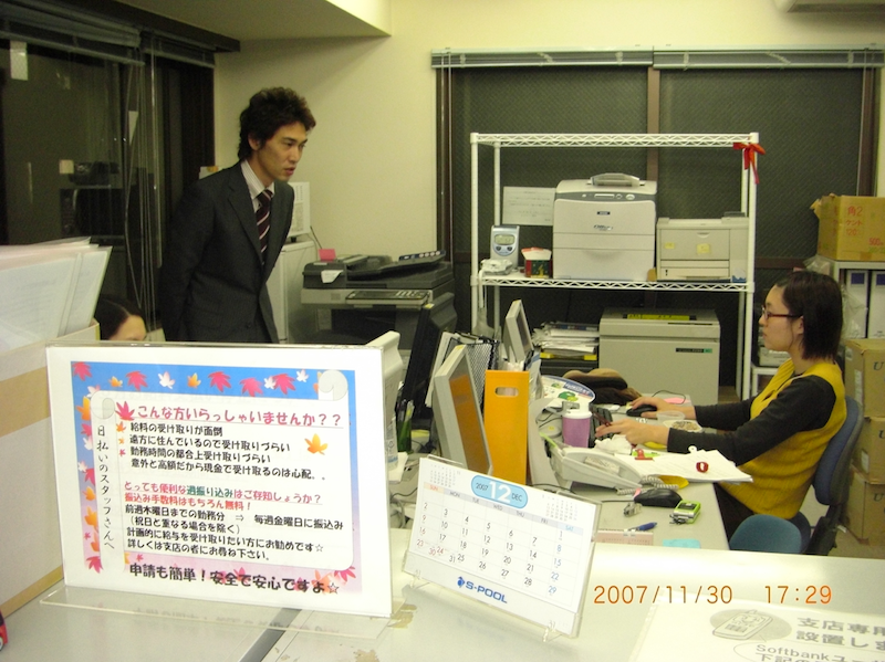 ▲短期派遣サービスを主力事業としていた当時はどこの支店にも日払い用のカウンターがありました