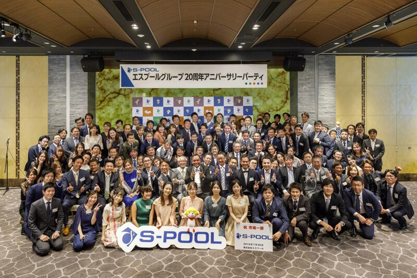 ▲20周年を迎えたエスプール(渡辺は後より右手後方)