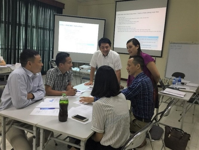 ▲JICAのプログラムでベトナムで研修する米川(中央)